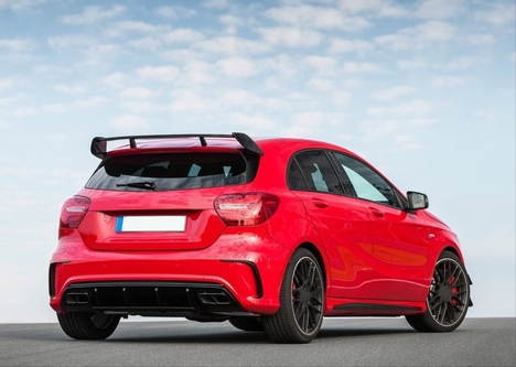 W176 16-18 A45 DIFUZOR & EGZOZ SETI (PARLAK SIYAH) – SIYAH EGZOZ ILE (AMG PAKET İÇİN )